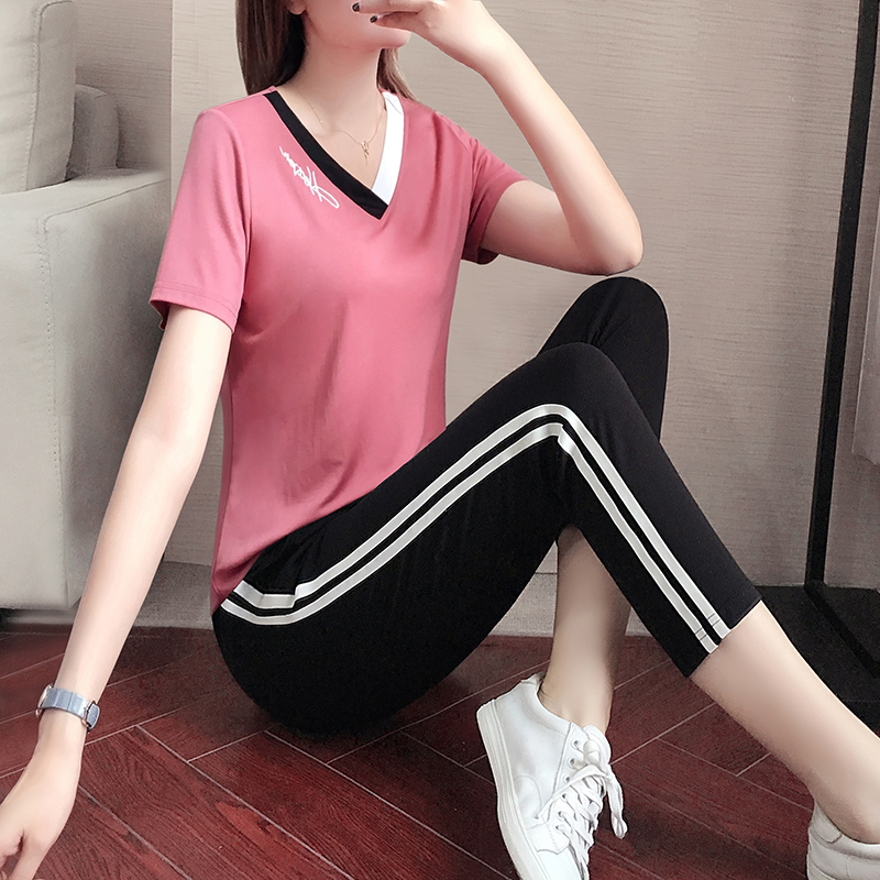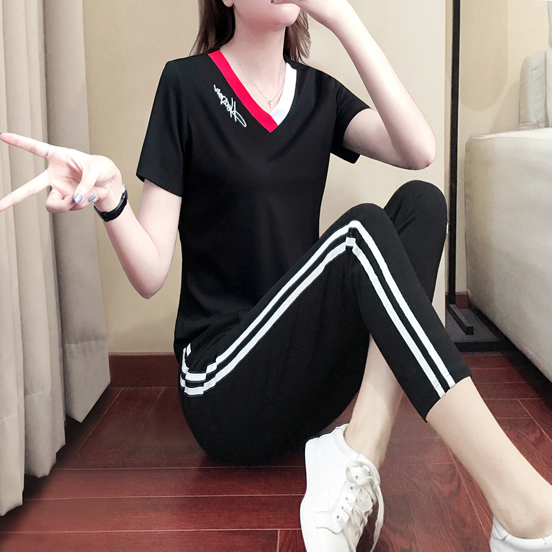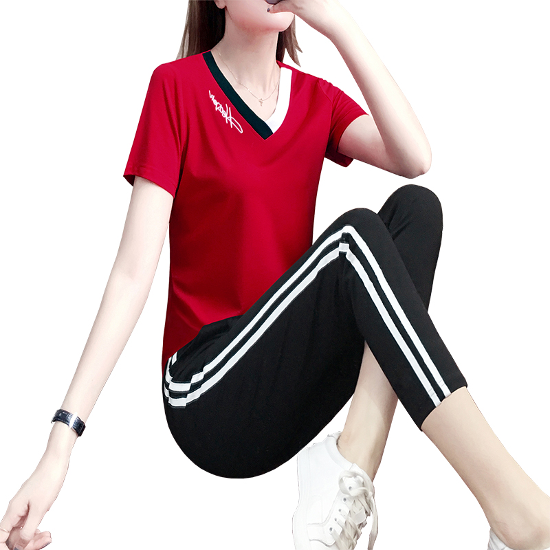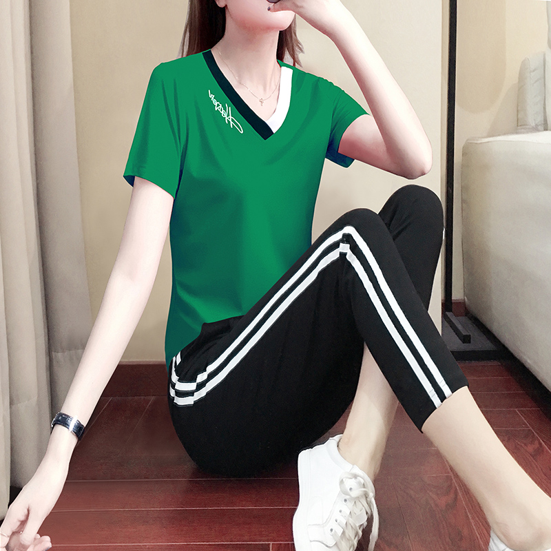 3003 Black Top Double White Cropped Pants 3003 White Top Double White Cropped Pants 3003 Red Top Double White Cropped Pants 3003 Green Top Double White