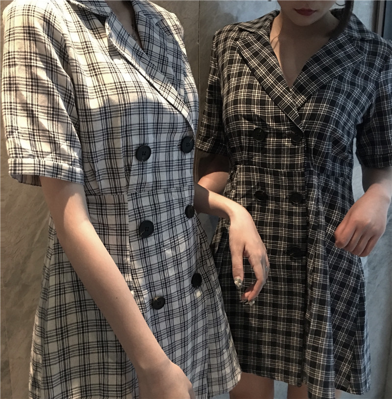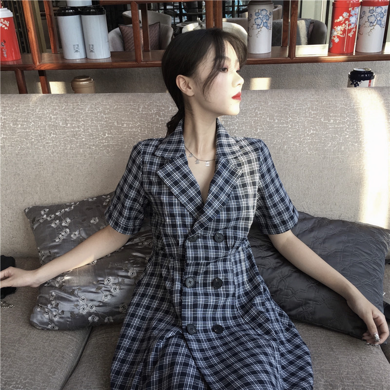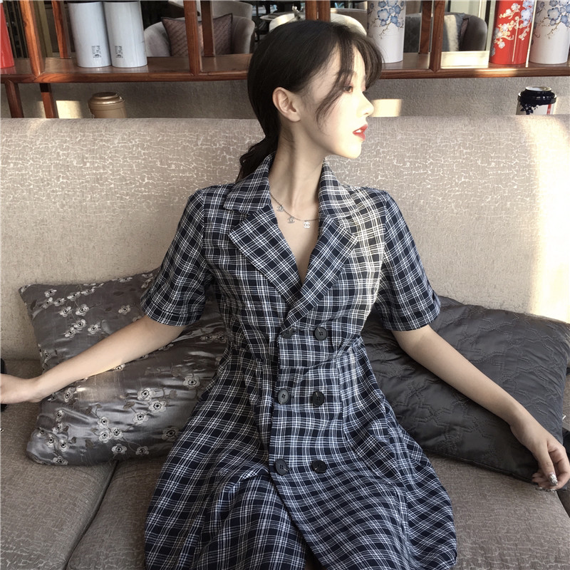 Korean suit plaid with dress 2022 Pop style little fresher teenage girl temperament retro skirt French little crowddress