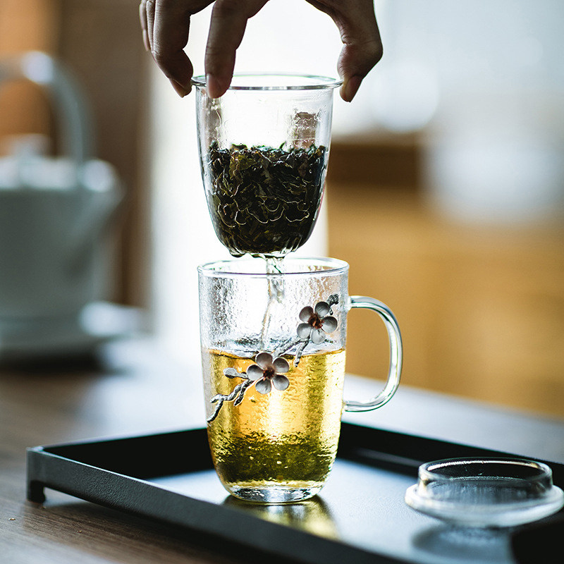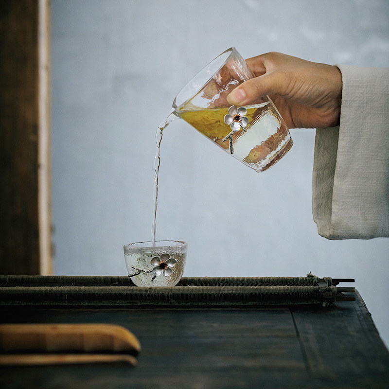 Japanese-style tea cup ice pattern heat-resistant tea cup hammer pattern glass cup simple and elegant small flower kung fu tea set ceramic single cup tea set