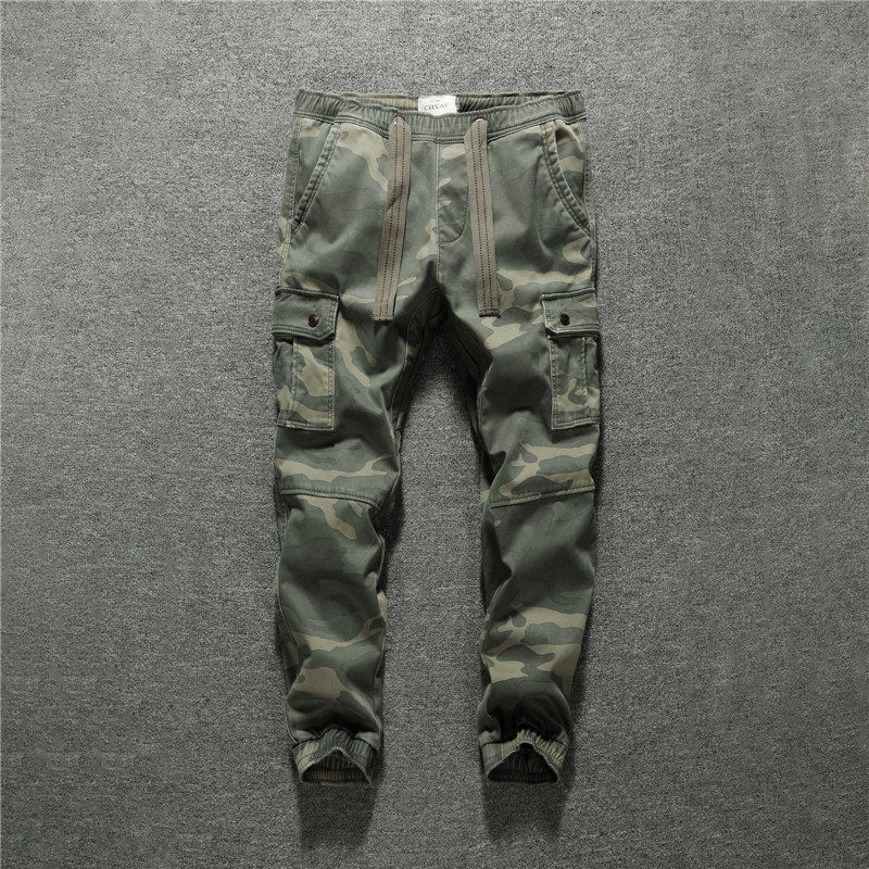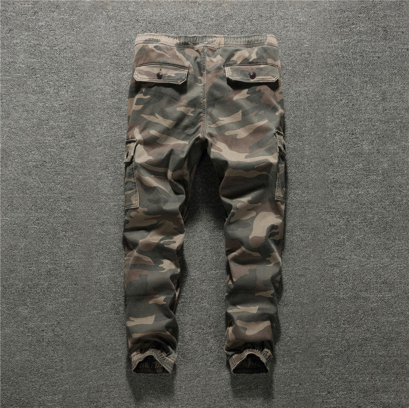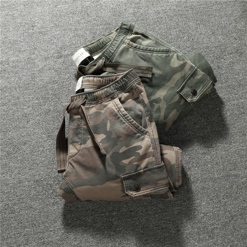 Autumn and winter men's American slim casual pants plus plush thick multi-pocket cargo uniform camouflage trousers corset pants