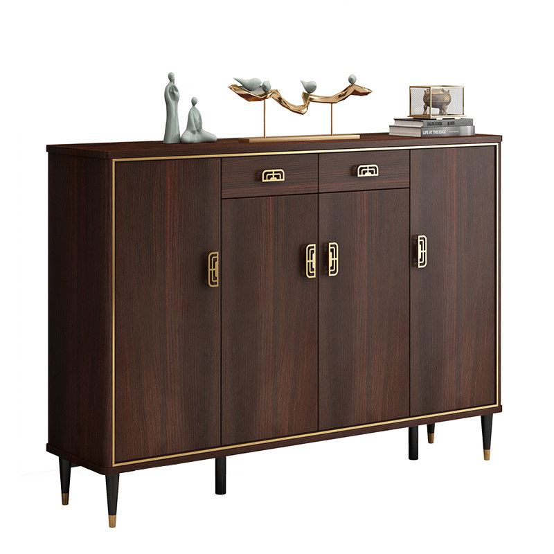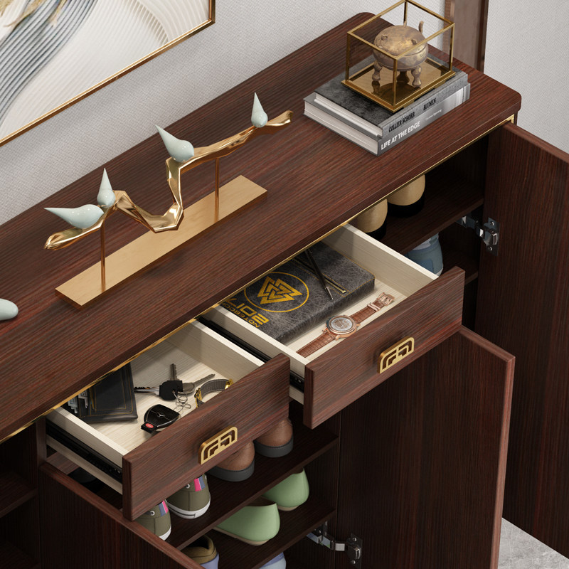 New Chinese shoe cabinet Solid wood frame household door large capacity light luxury entrance cabinet Storage cabinet Balcony storage partition cabinet