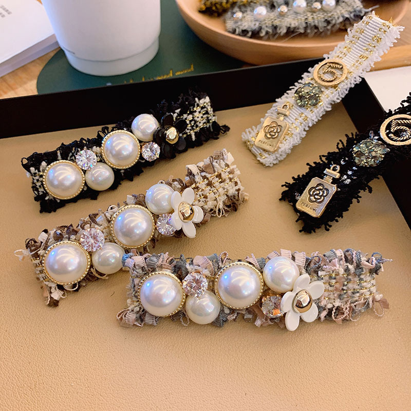 South Korea's new small fragrant style cloth hairpin pearl bangs side clip temperament all-match back head broken hair clip