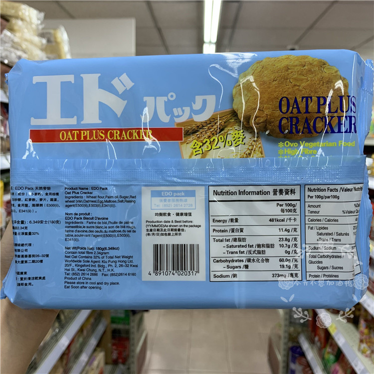 Hong Kong EDO Pack Jiang family Natural wheat cake 180g with 32% wheat independently packaged Meal Biscuit
