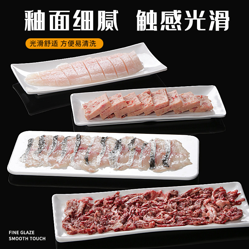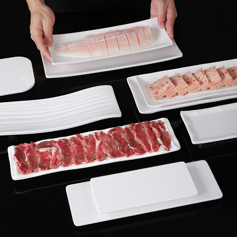 Meamine white hot pot shop meat plate commercial hotels dining plate plate plastic rectangular sushi plate