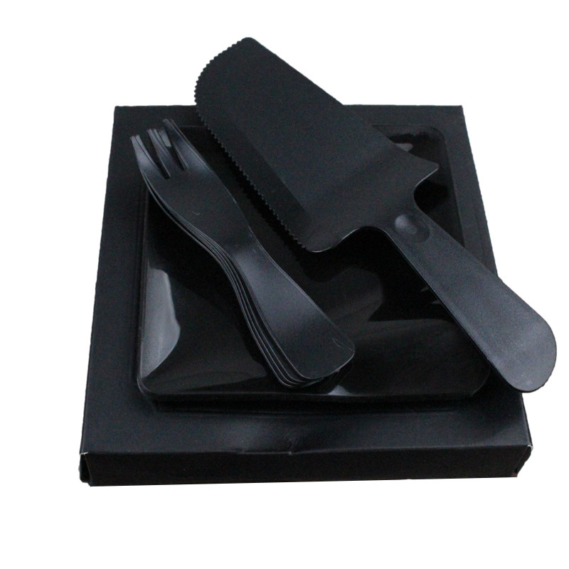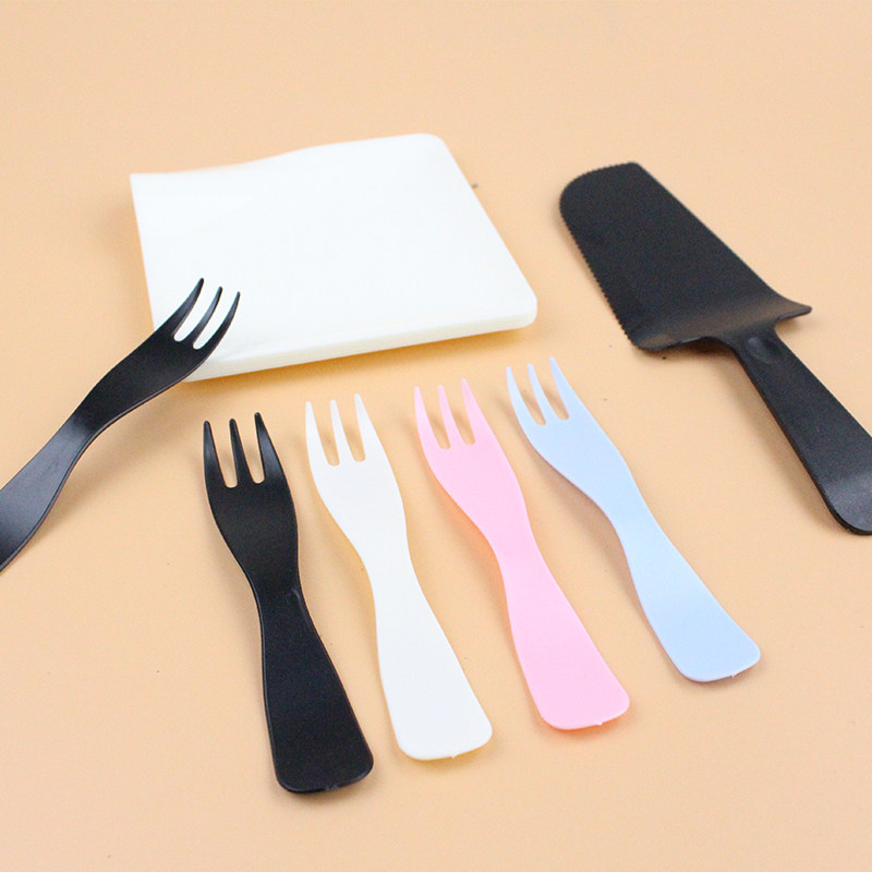 New Pint Square Drop Tray Suit Three-in-one Knife Fork Tray Combined Birthday Cake Cutlery Sets Plastic Cutlery