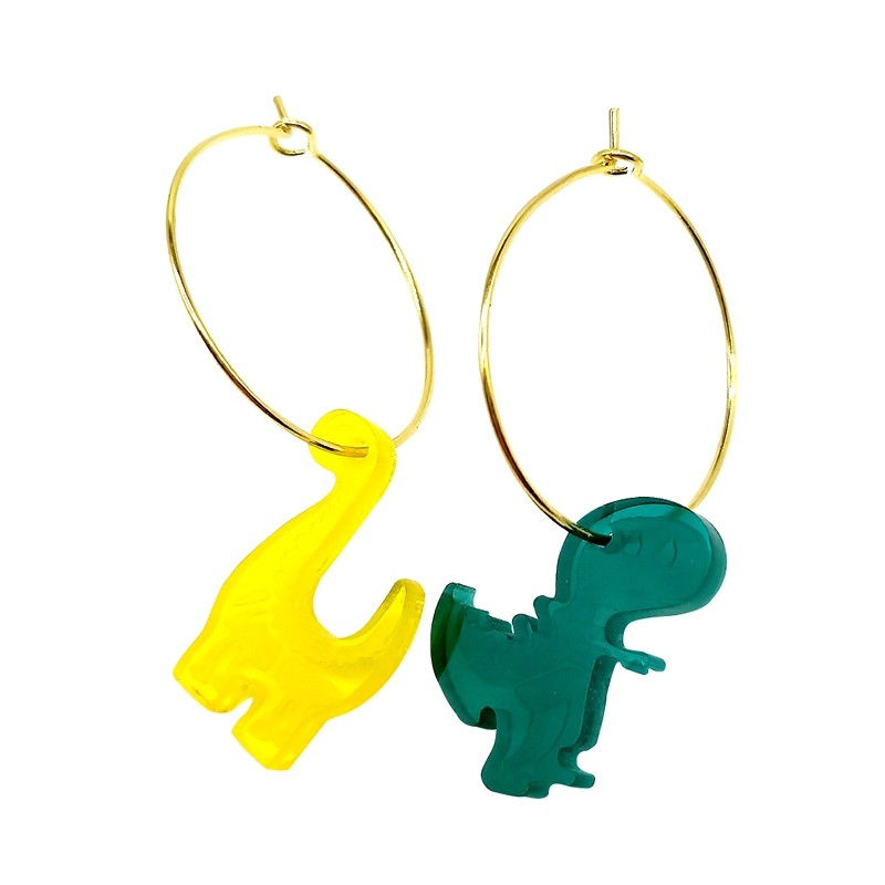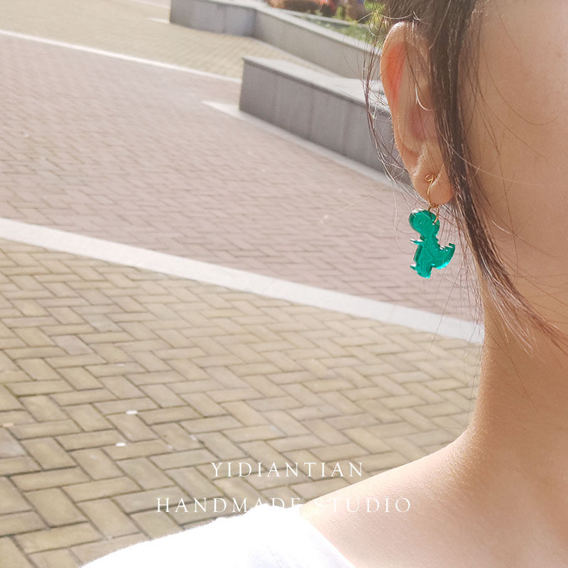 New product cute Jurassic acrylic small dinosaur asymmetrical mosquito coil ear clip earrings fun chic no ear holes