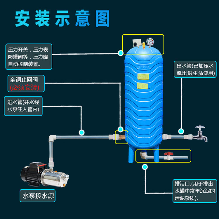 Huijie PE pressure tank Household tower-free water supply Plastic automatic water tower Tap water booster pump water storage tank