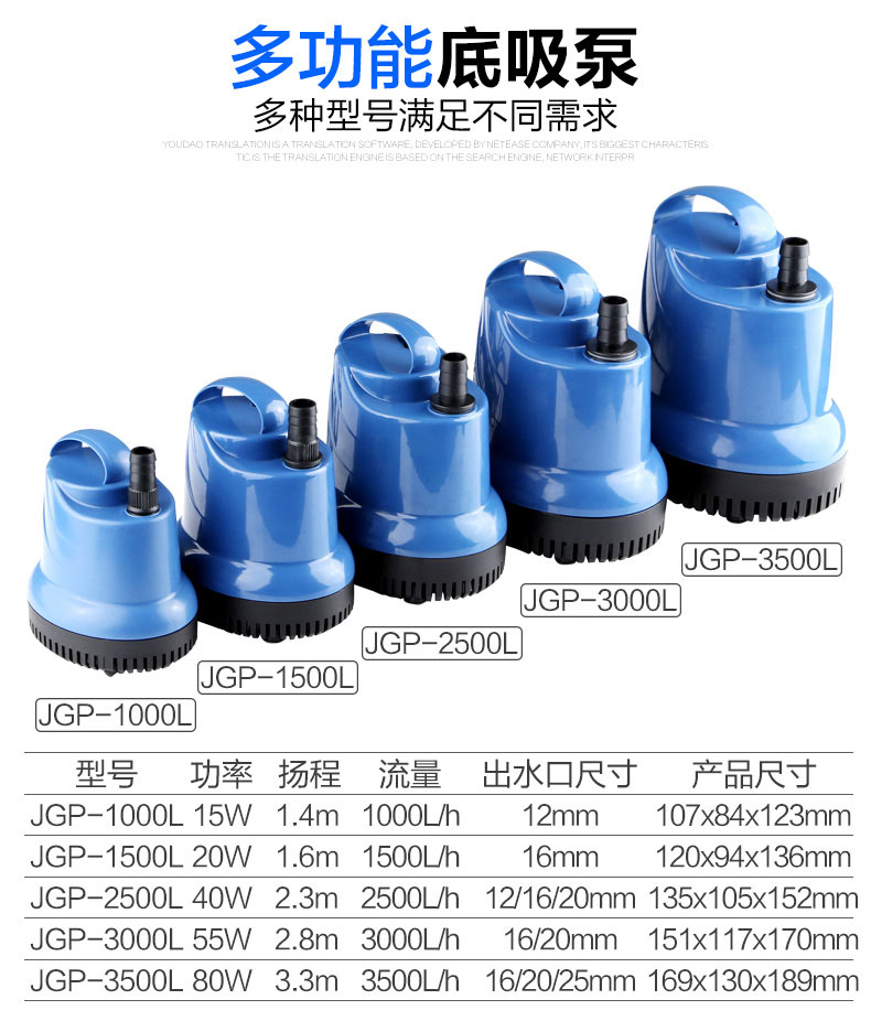 Sensen JGP series submersible pump fish tank bottom suction pump low water level change water pump filter pump vertical pump pumping pump