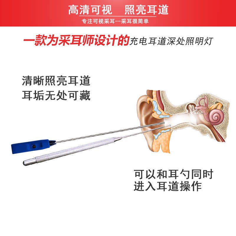 Ear canal floodlight nozzle luminous USB charging extraction ear tool stainless steel tug ear deity Dig Earner