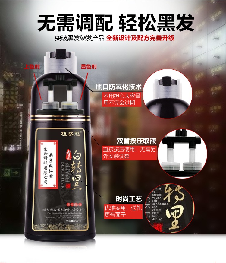 Nanjing Tongrentang hair dye one wash black plant cream pure at home shampoo bubble men and women natural black