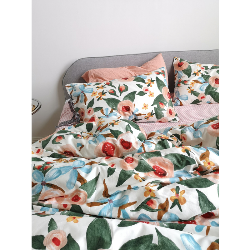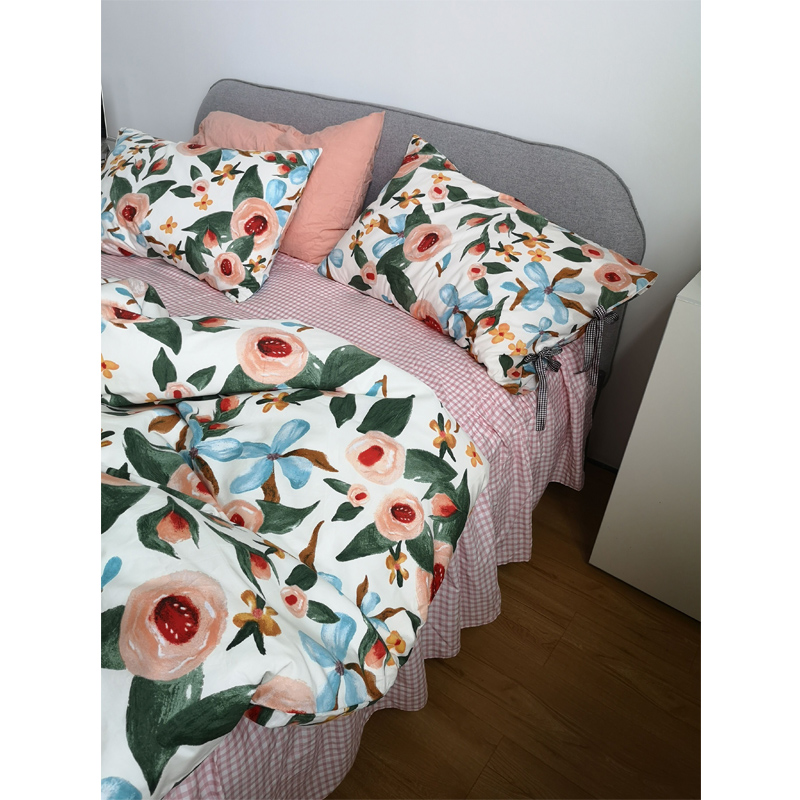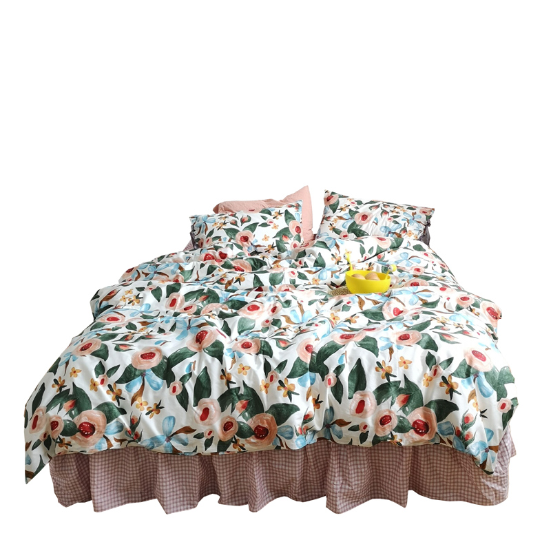 Han Style Strap Flower All-cotton Four Sets Double 1 5 1 8m bed dress pure cotton bed Bedding Step Up Girl Hearts