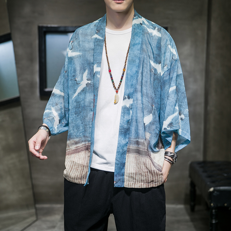 Hanfu men summer ancient costume Ming Dao robe large size fat man cape Tang coat chiffon ice silk trench coat sunscreen suit