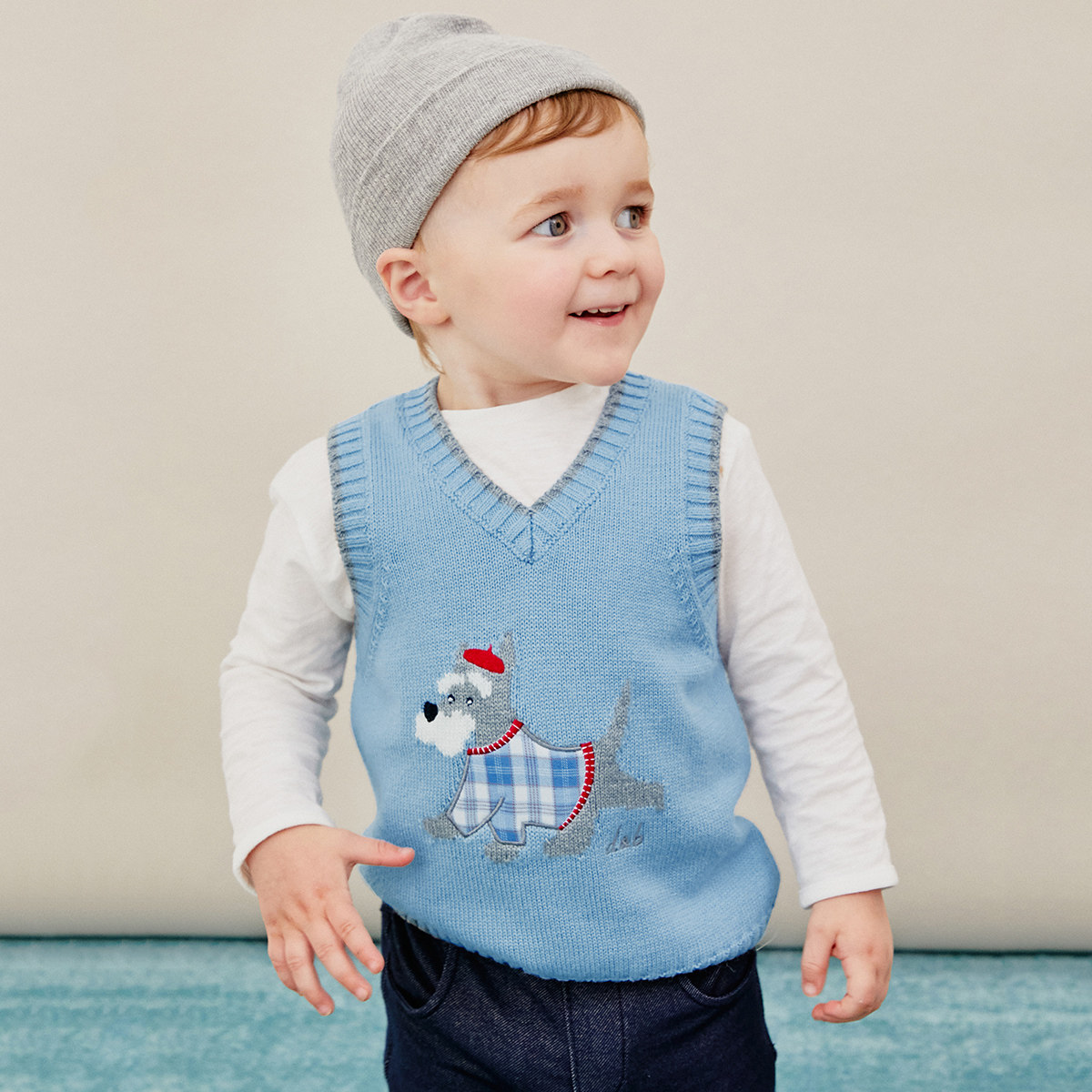 Davibella boy's baby clothes boy baby vest boy clothing knitted sweater shoulder child waistcoat spring autumn