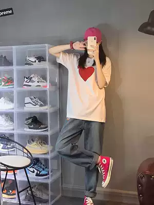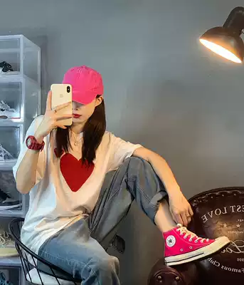 2021 summer new men and women couples Japanese Tide brand short sleeve ins tide love cotton loose Joker white T-shirt women