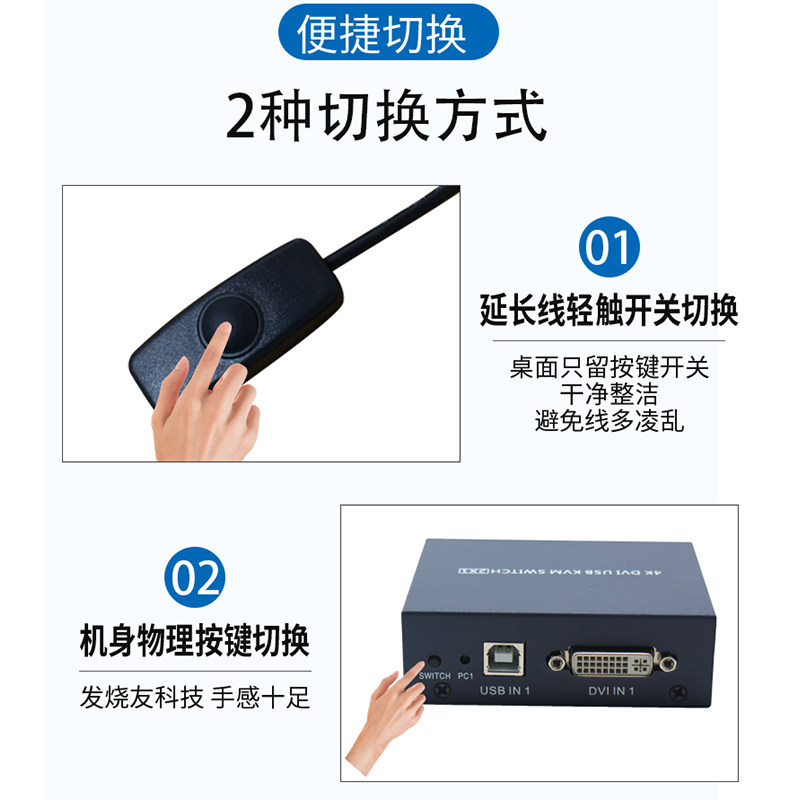KVM switch 2 port DVI4K HD two computers share 1 monitor 1 set of keyboard and mouse U disk printer