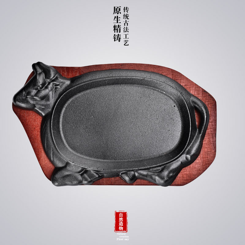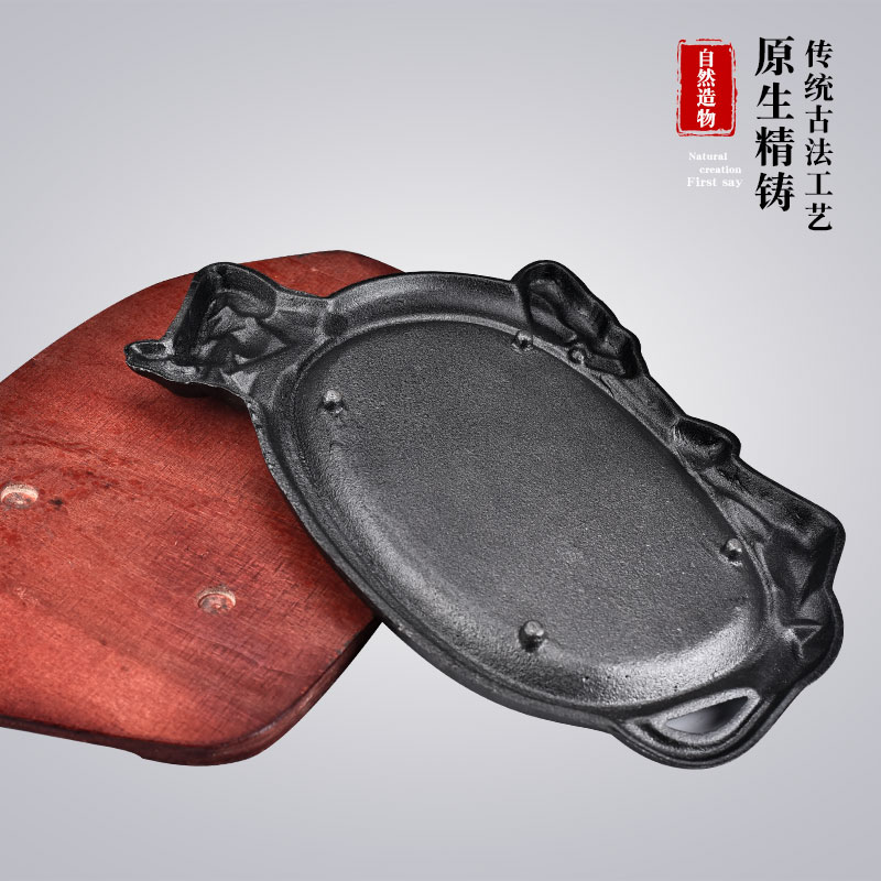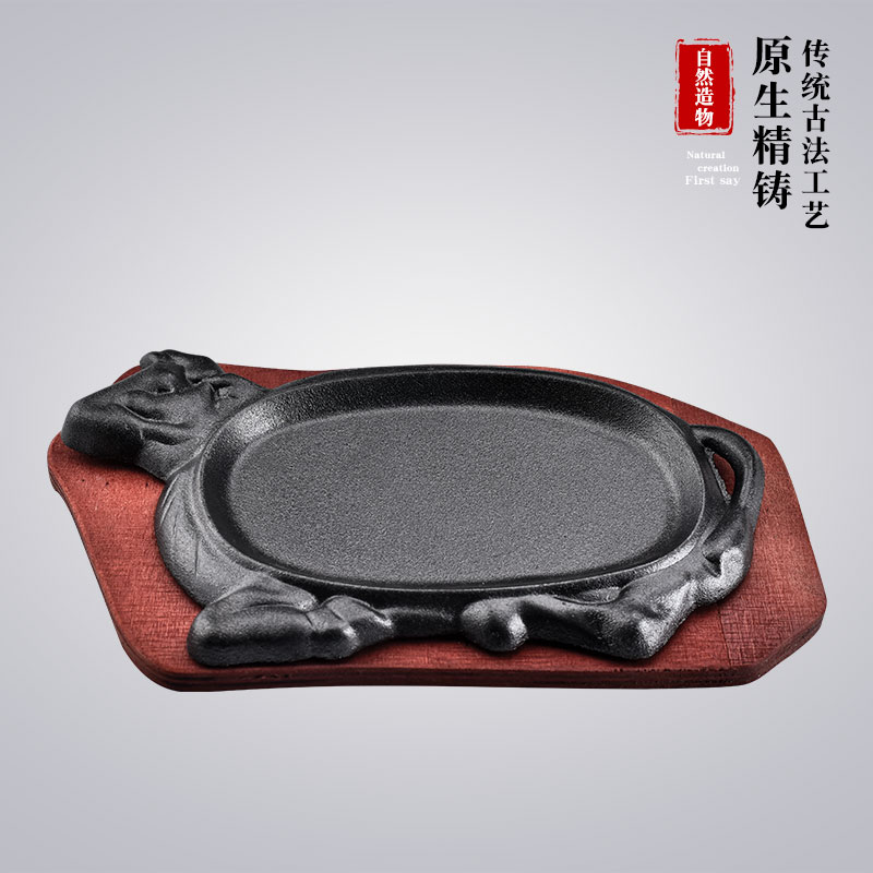 Commercial steak barbecue meat frying plate Korean rectangular household iron plate barbecue fish plate cast iron round steak iron plate