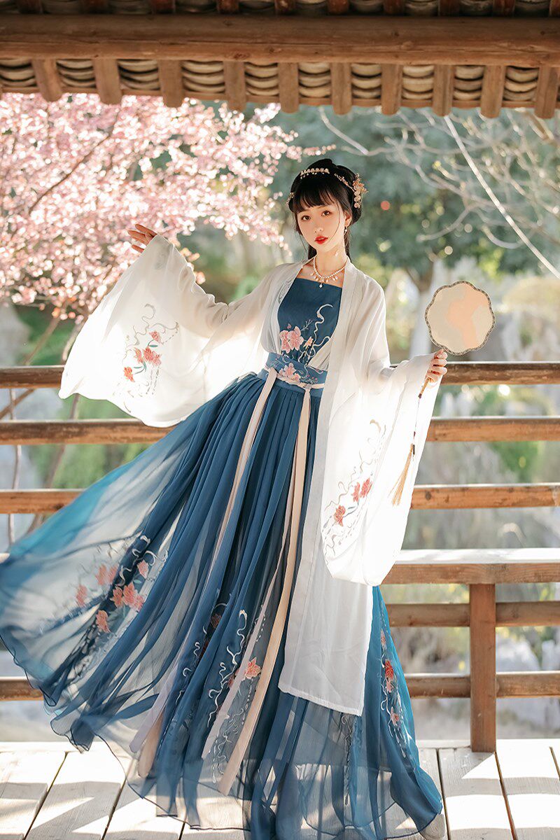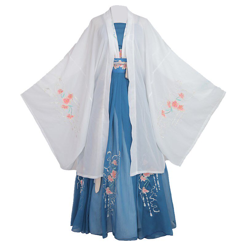 Hanfu women's original Chinese style daily spring and summer super fairy elegant cherry blossom embroidered ancient costume placket waist skirt suit