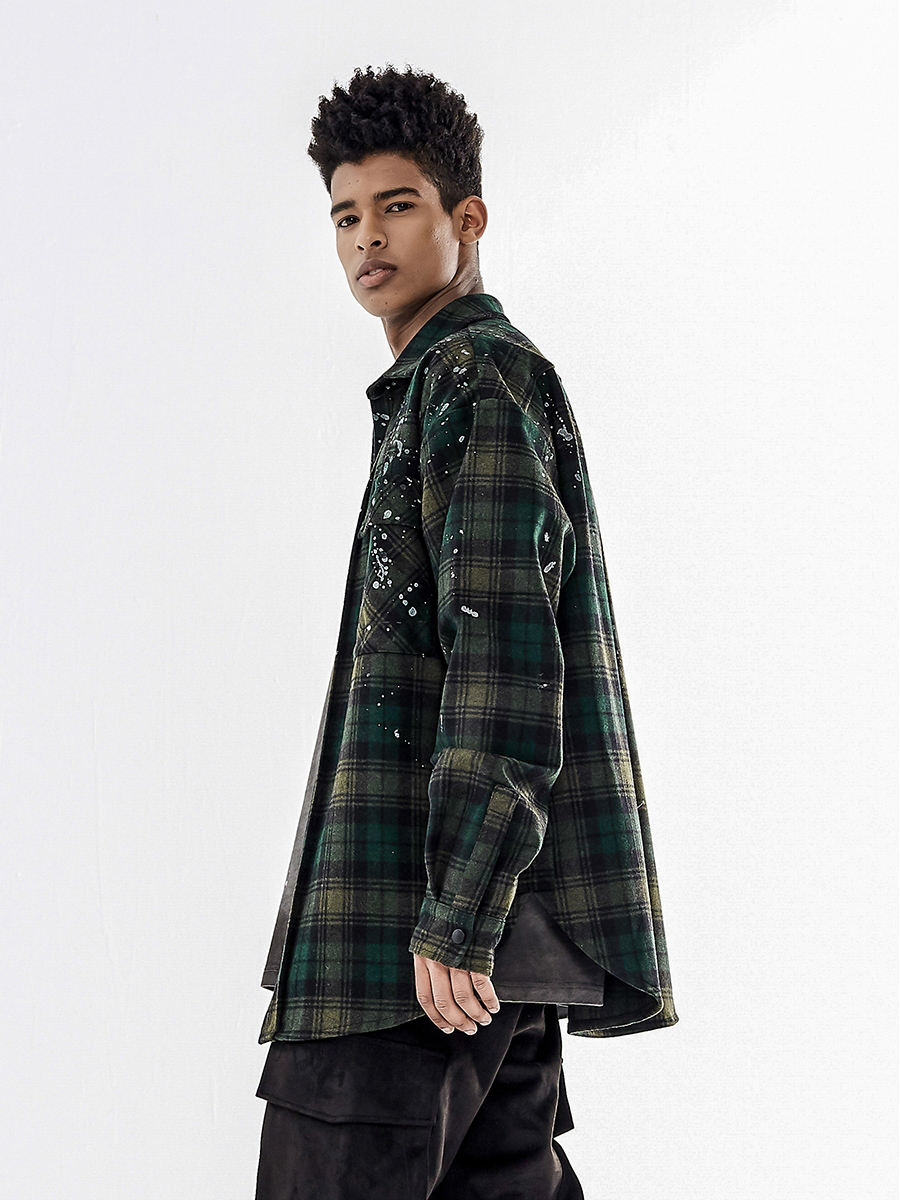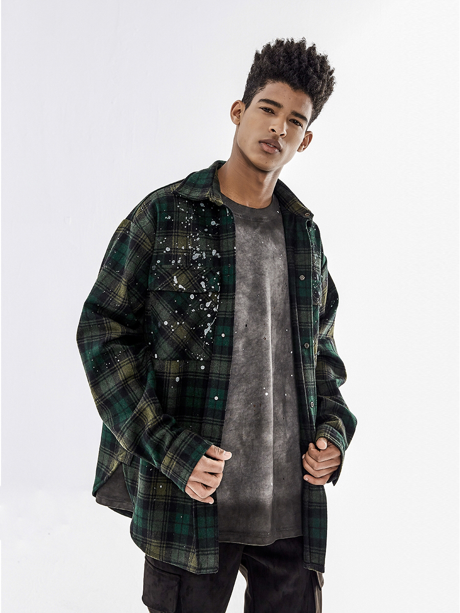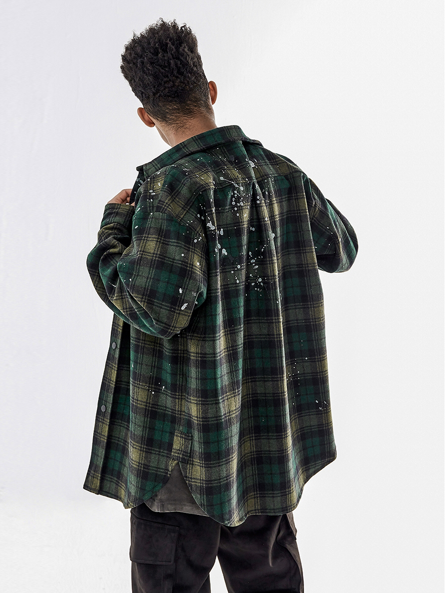 BONELESS Wool Blend Check Loose Wool Jacket Coat Shirt