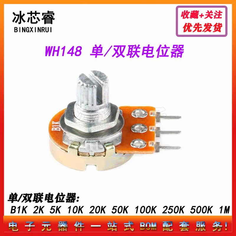 WH148 Single Double Potentiometer B1K 2K 5K 10K 20K 50K 100K 250K 500K 1M