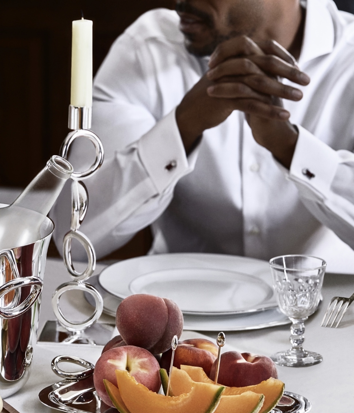 Spot Christofle Kunting Four Ring 30cm High Third Ring 23cm High Stainless Steel Cirque Candle Candle Holder