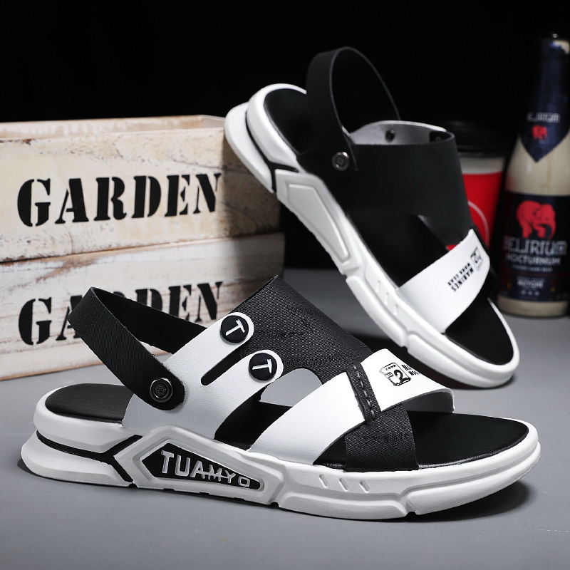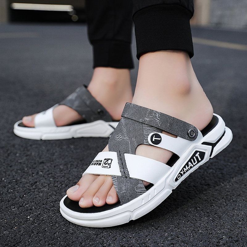 Dual-use leather sandals men's summer 2022 new beach sandals outdoor leisure deodorant driving trend outside wear slippers