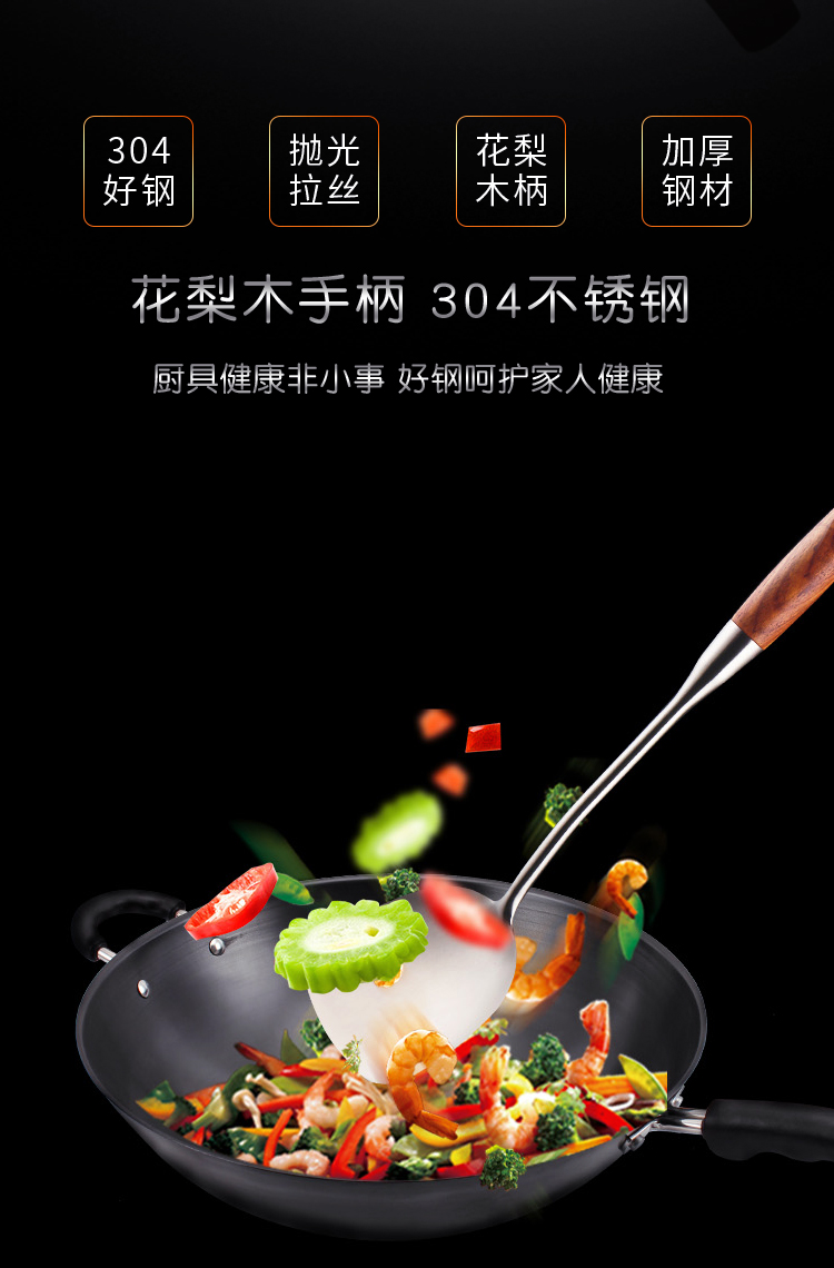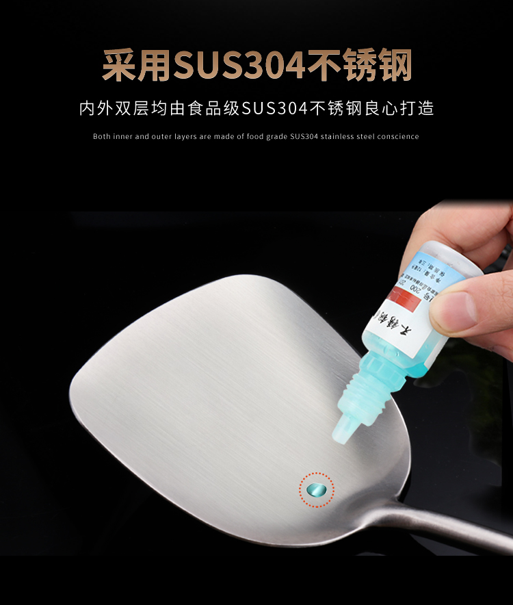 German stainless steel spatula thick 304 household saucer shovel kitchen wooden handle iron shovel set