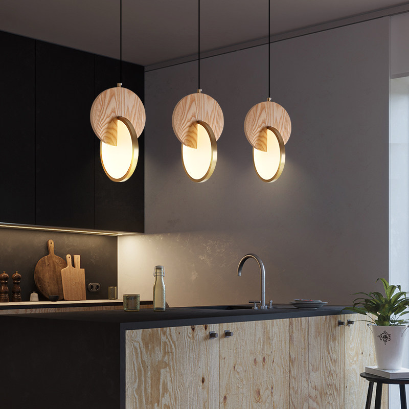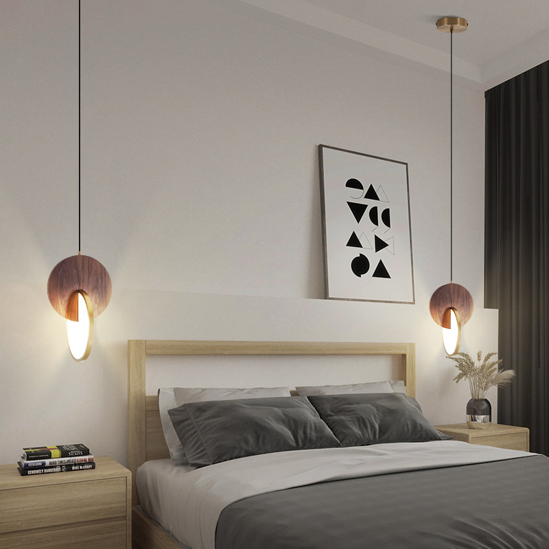 Bedside chandelier Nordic minimalist modern dining room dining room lamp walnut all copper light luxury room bedroom bar chandelier