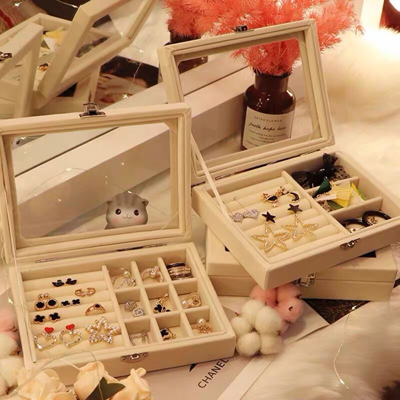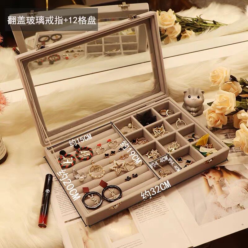 Jewelry containing box Girl Ornament Ring Earring Earrings Necklace necklace display Desktop finishing European-style dust-proof containing shelf
