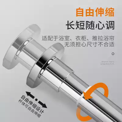 Non-perforated telescopic rod 304 stainless steel bathroom shower curtain rod cosmetic room clothes bar wardrobe telescopic rod curtain hanging rod