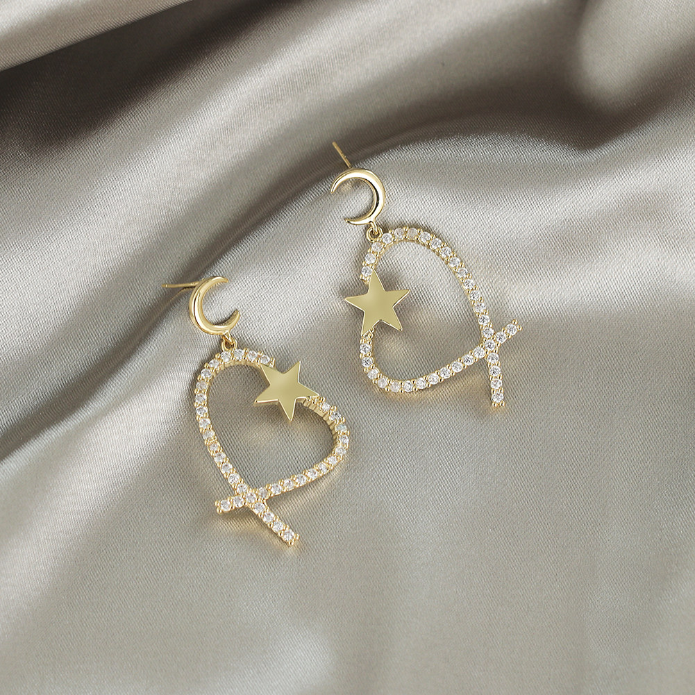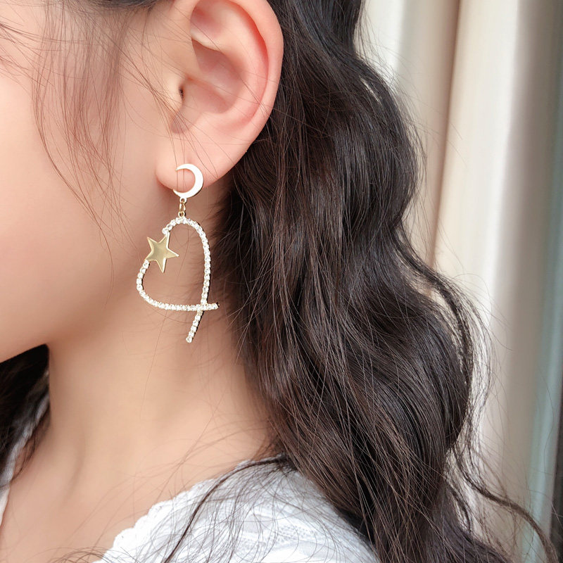 s925 silver needle new earrings Japan and South Korea exaggerated temperament love peach stars moon face thin female trend ear jewelry