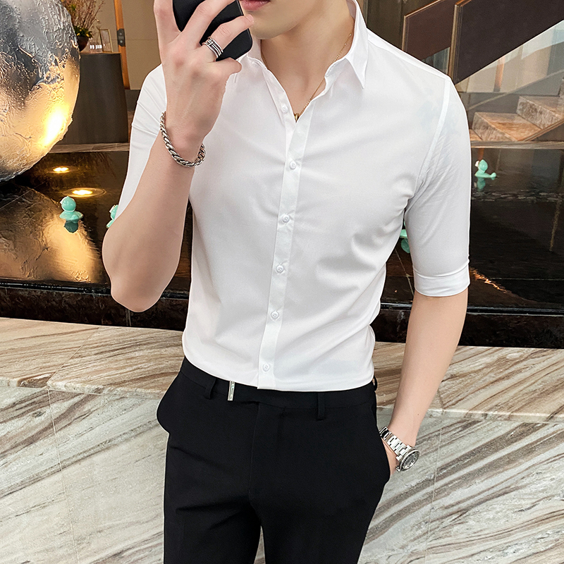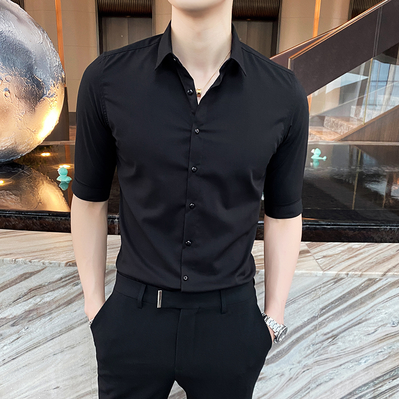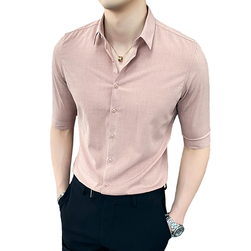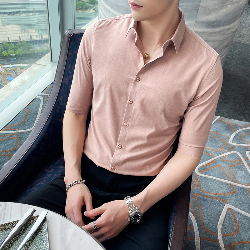 70% sleeve shirt male and Korean version trend handsome summer pure color swarm men short sleeve shirt business casual men's clothing