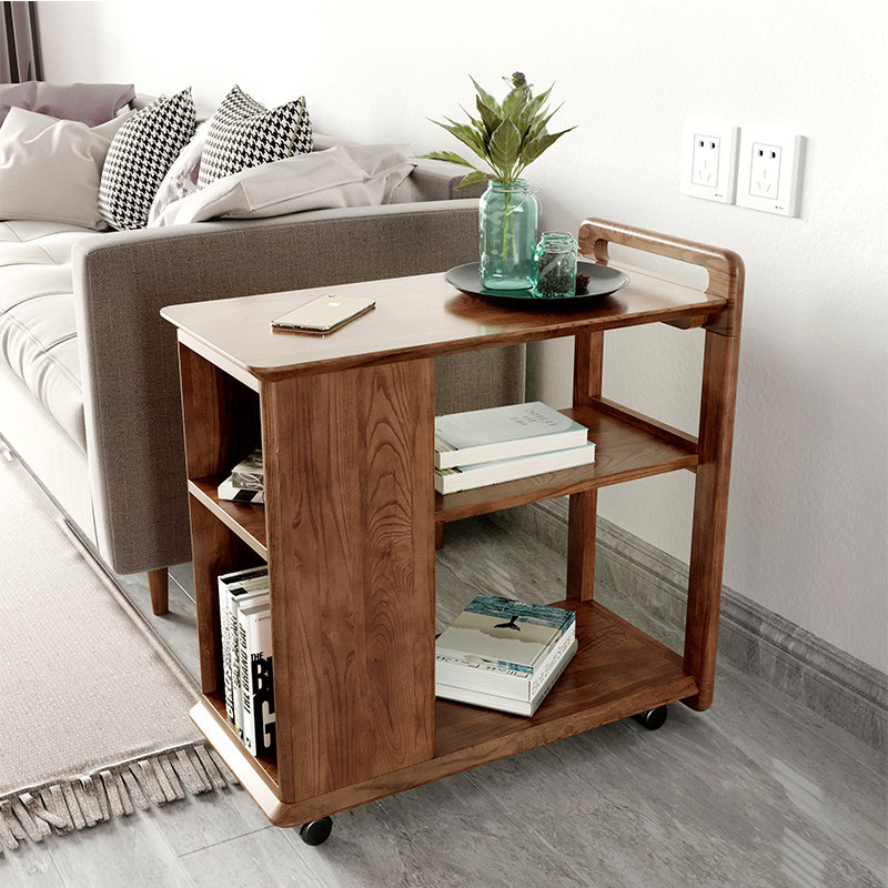 Nordic sofa solid wood with wheels removable edge Several minimalist livingroom strip corner Several Home Tea Desk Trolley Small Cart