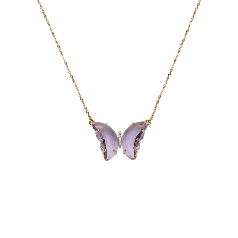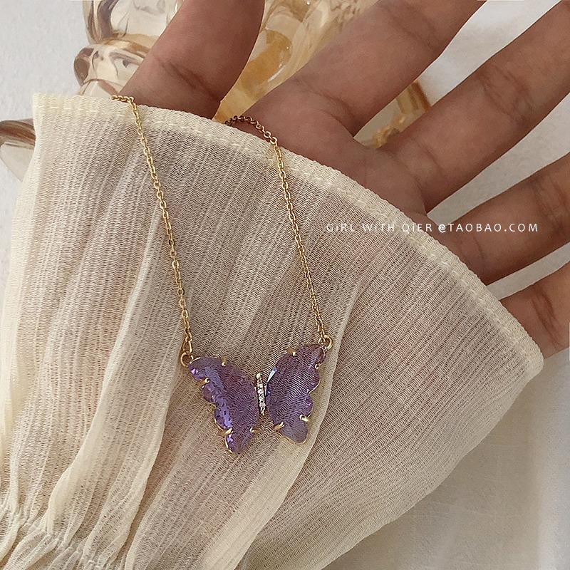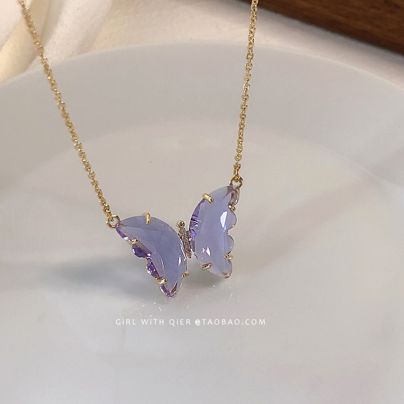 Fantasy purple crystal butterfly necklace female summer niche design sense necklace fairy clavicle chain 2022 new