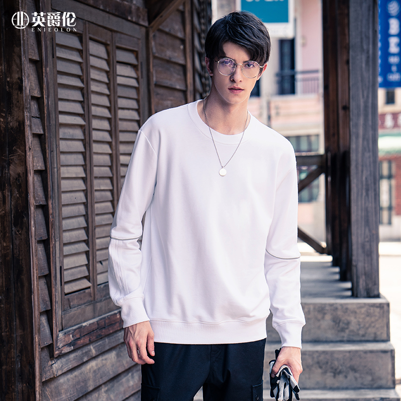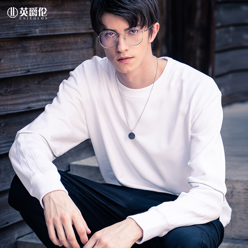 English Pure Cotton Sweatshirt Spring New Men's Outerwear Trend Loose Crewneck Contrast Tide Brand Top