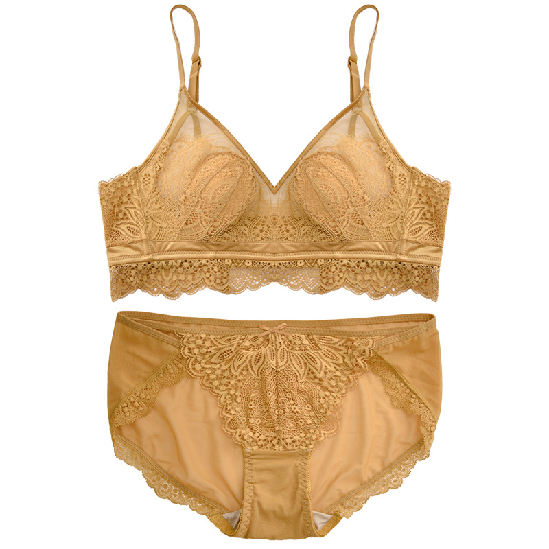 Honey Peach Neon Light Summer Super Slim Lace Small Cute Suit Mesh Yarn Transparent No Steel Ring Big Chest Display Small Anti-Bump Underwear