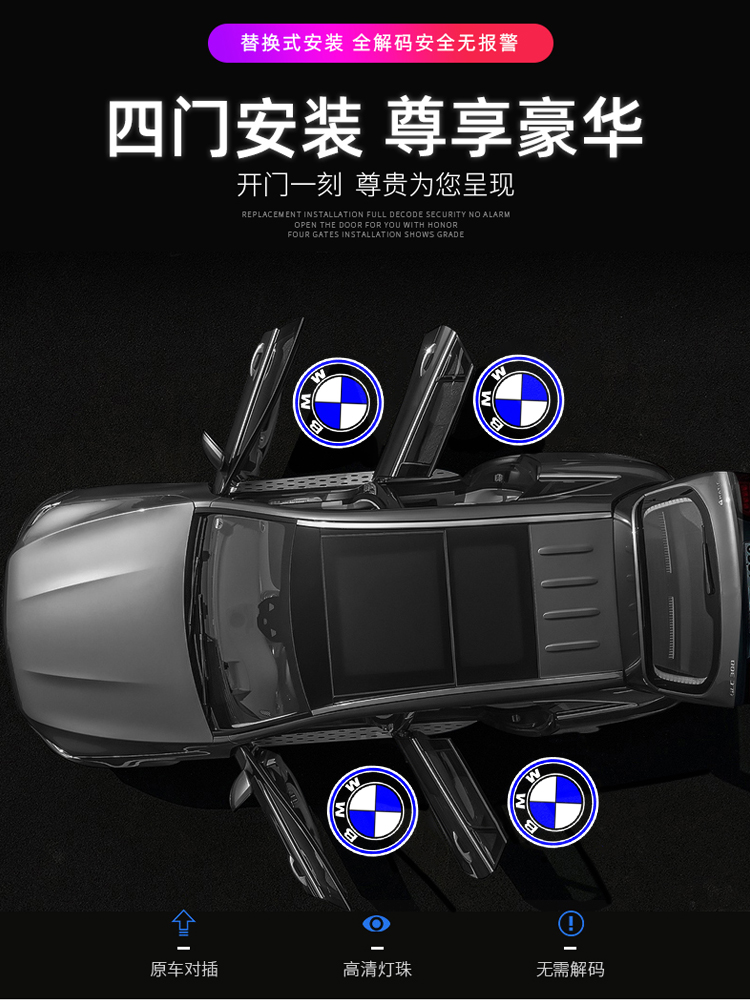 BMW3 series 5 series 525 530 door welcome light original 1 series 7 series X1 X3 X5 decorative atmosphere light modification