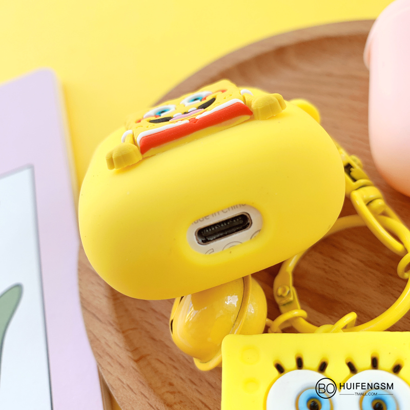 (Baseus W04 W04Pro Set) Yellow Set - Happy Sponge 3D Doll Pendant (Baseus W04 W04Pro Set) Yellow Set - Happy Sponge Same Silicone Ring Buckle