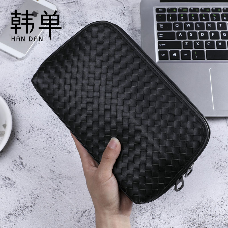 First layer cowhide clutch bag men's new woven men's clutch bag business casual mobile phone bag trend leather men's bag