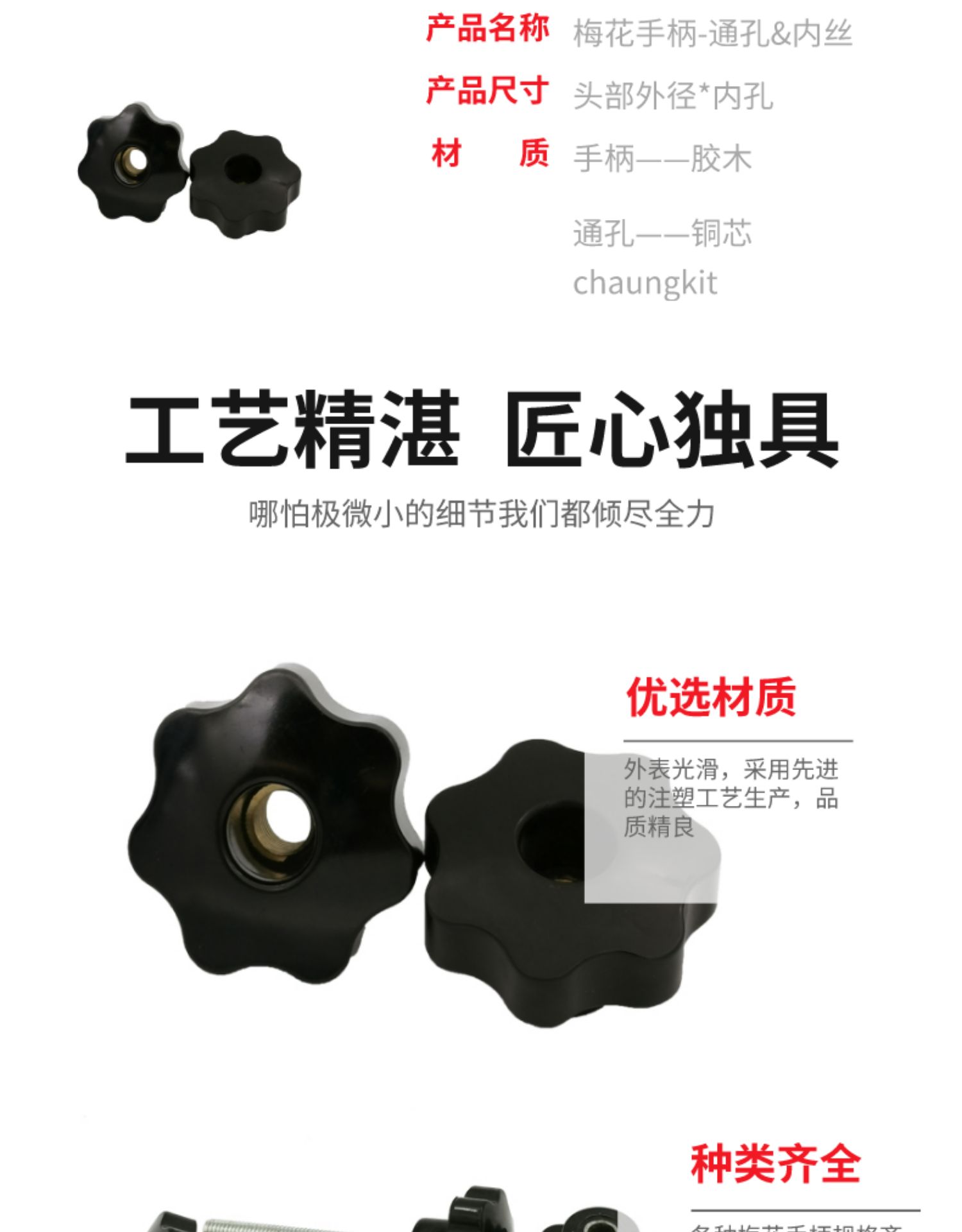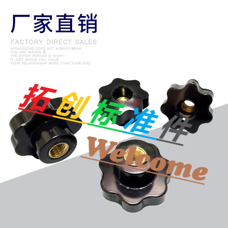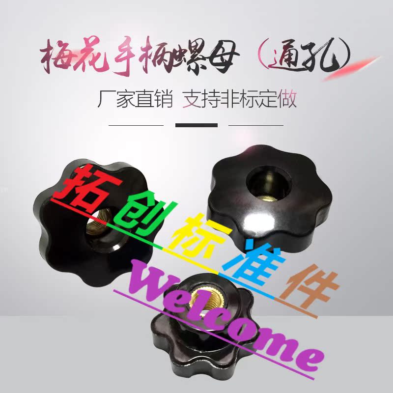 Through-hole plum handle screw hand screw nut M6M8M10M16 star handle 7-star rubber wood handwheel bolt-Taobao