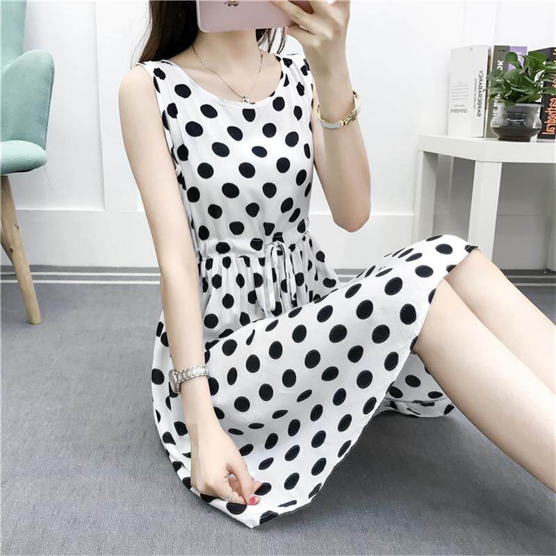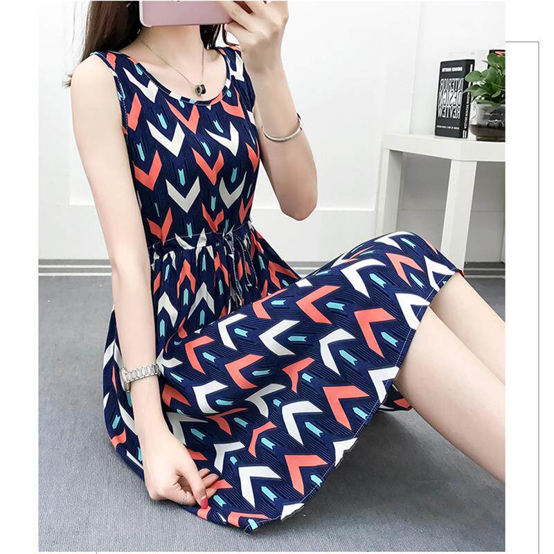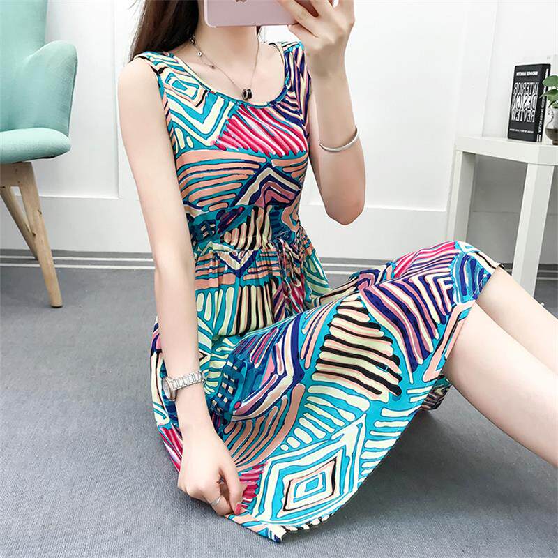 Cotton silk dress, mid-length floral skirt, summer student, small, fresh and cute, seaside holiday beach skirt