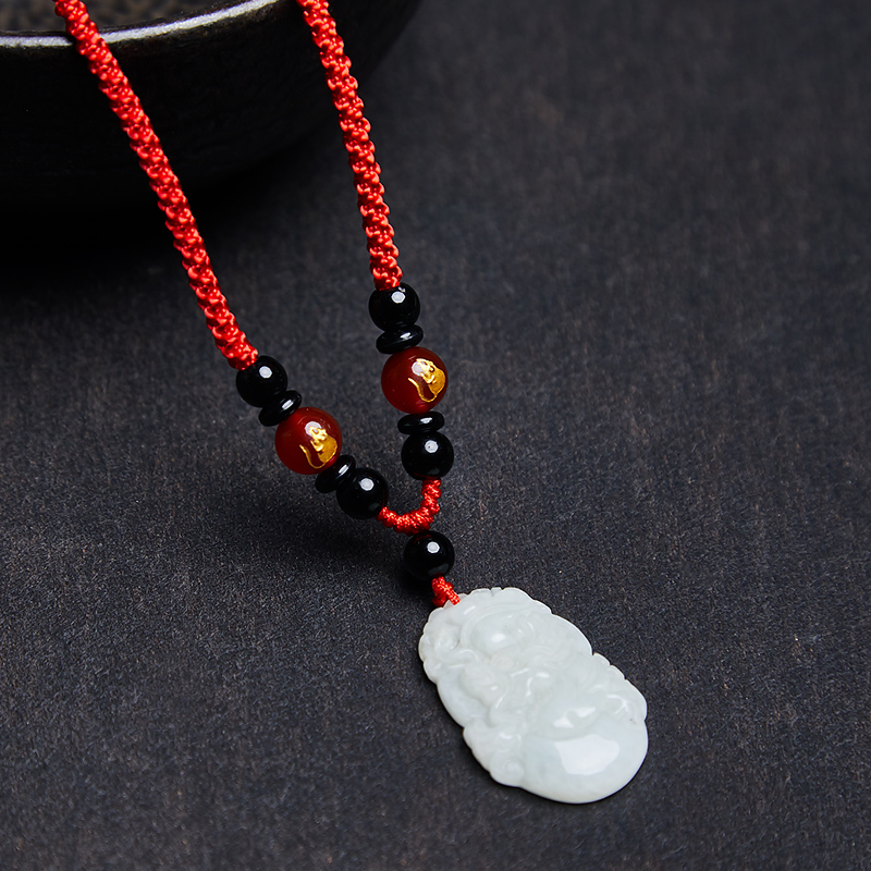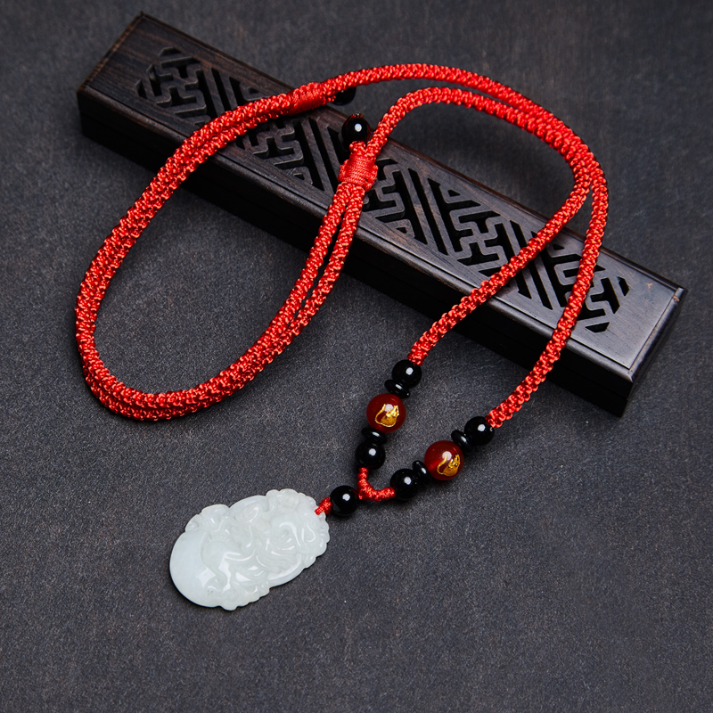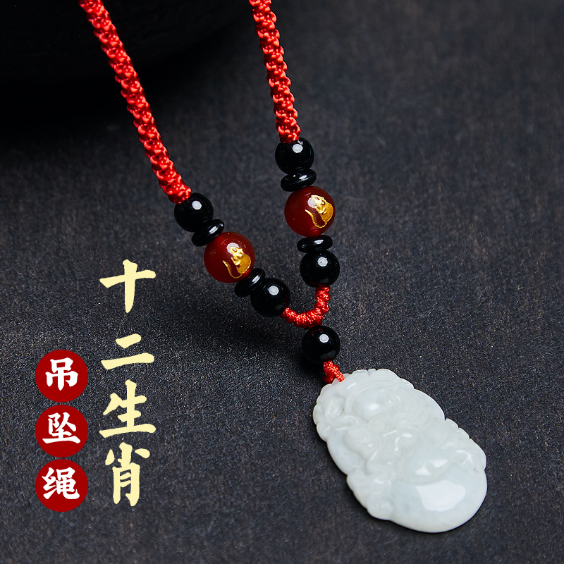 Hand Woven Hanging Rope Pendant Rope Gold Emerald Zodiac Manau Necklace Rope Male Jade Pendant Jade Perope Children