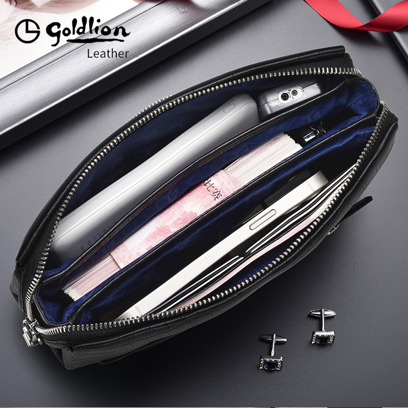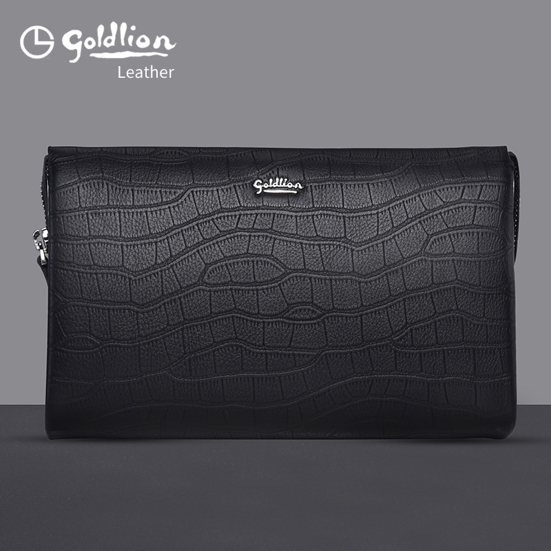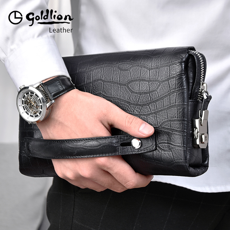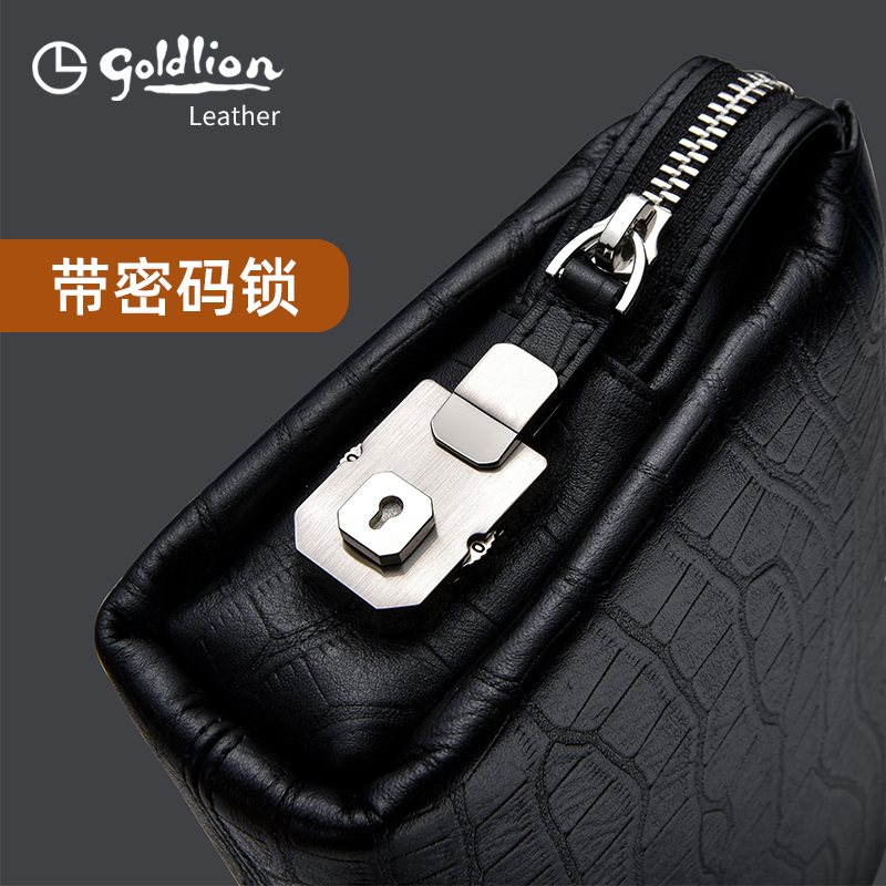 Kinley to 2022 new crocodile textured men's genuine leather handbag with large capacity burglar-proof coded lock bracelet handgrip bag