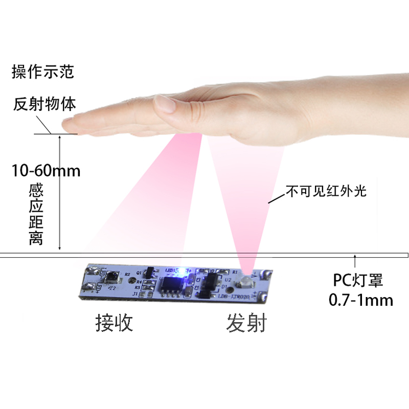 Smart mirror hand sweeping switch free of drilling and penetrating glass 5-8cm5v12 v24v hand blocking induction module