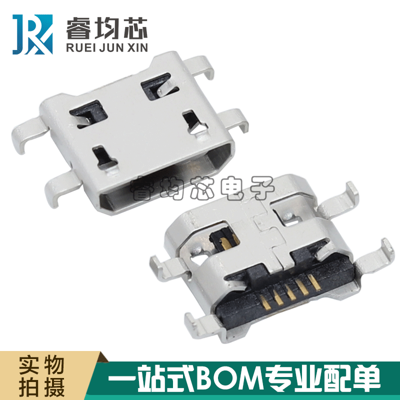 All-copper Micro 5p sunken board 1 0 with curled edge four-legged Mac 5p 5-pin 4-legged USB female seat braid