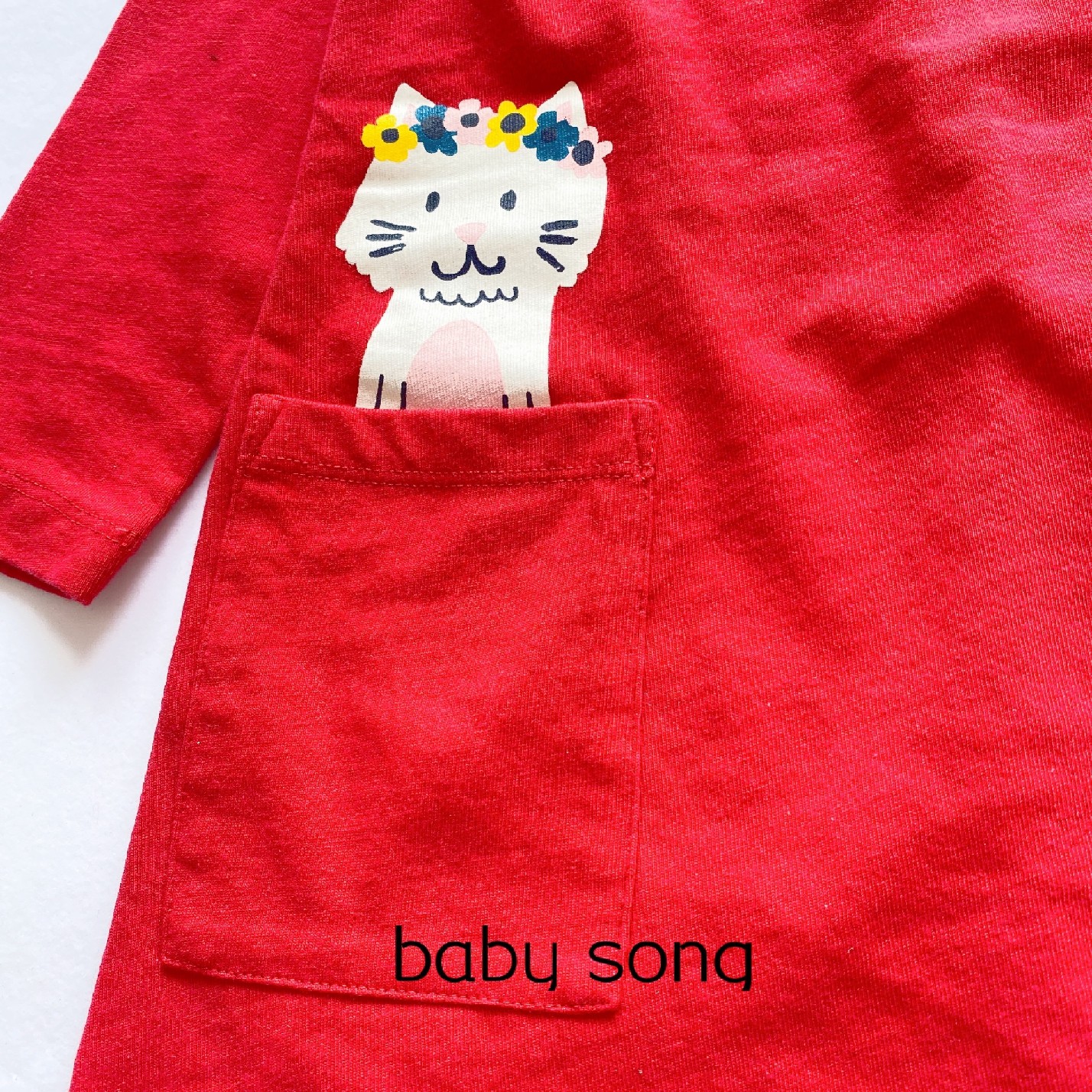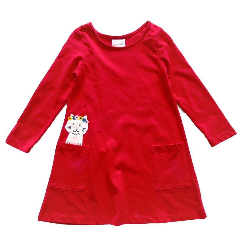 Exported to the United States light luxury 100-140 female middle-aged children's cotton long-sleeved cute pocket cat princess dress