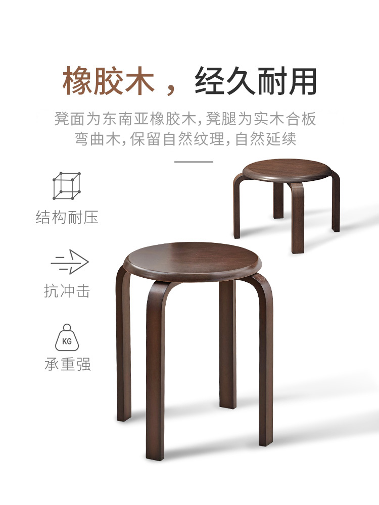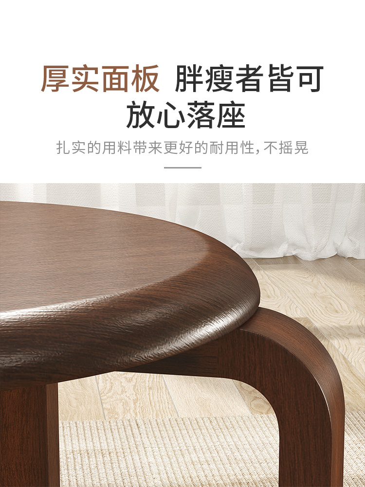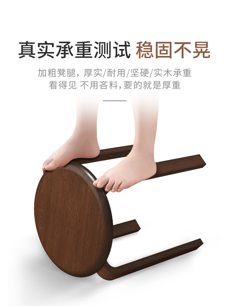 Nordic solid wood round stool small bench Household wooden stool Adult coffee table leather stool strong low stool Living room dining table stool footstool
