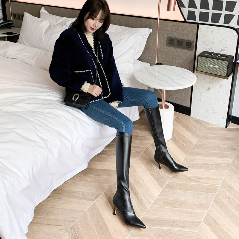 YCF long legs Korean version thin heels thin boots women's 2022 spring and autumn Hyuna white elastic pointed toe high-heeled boots