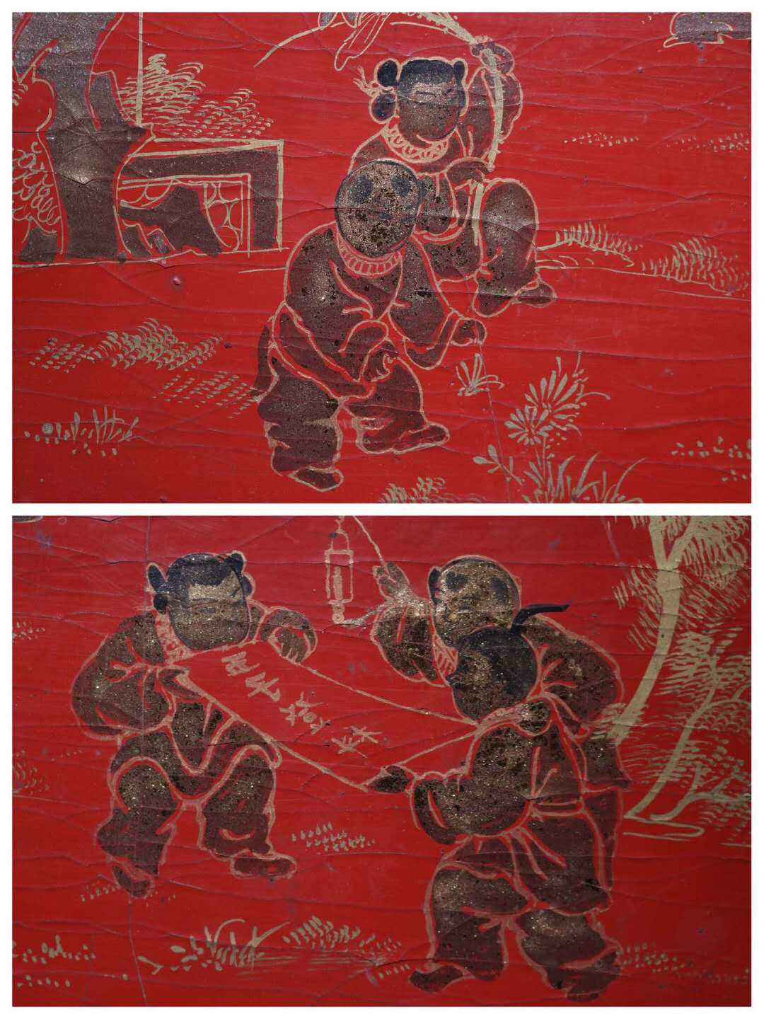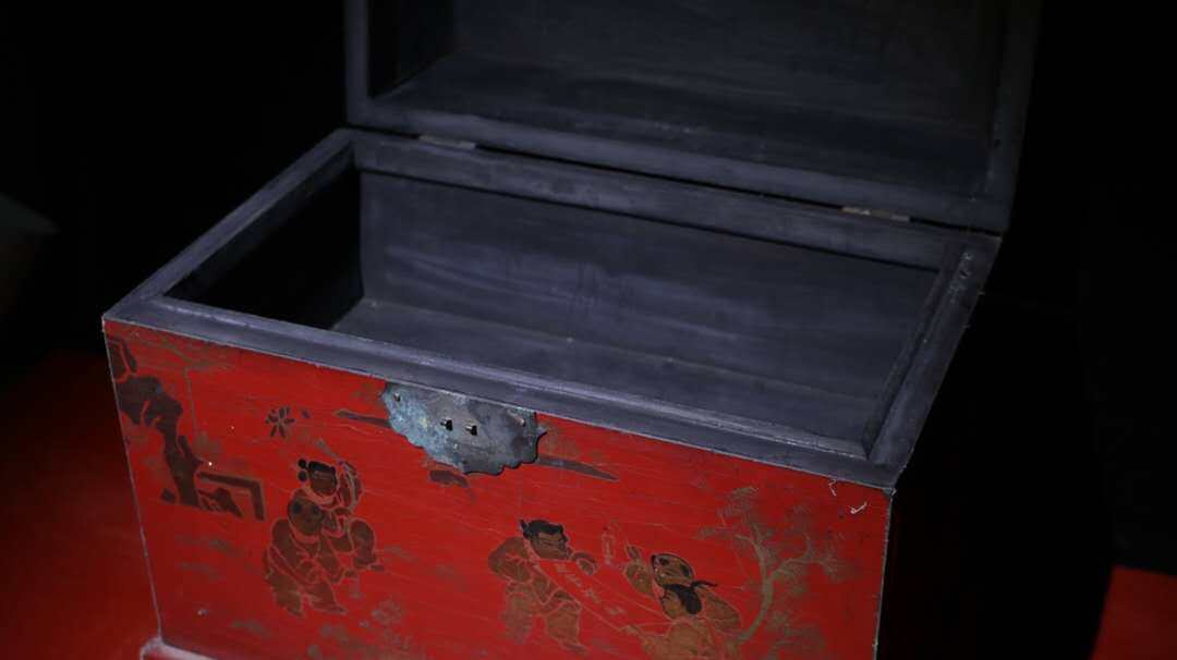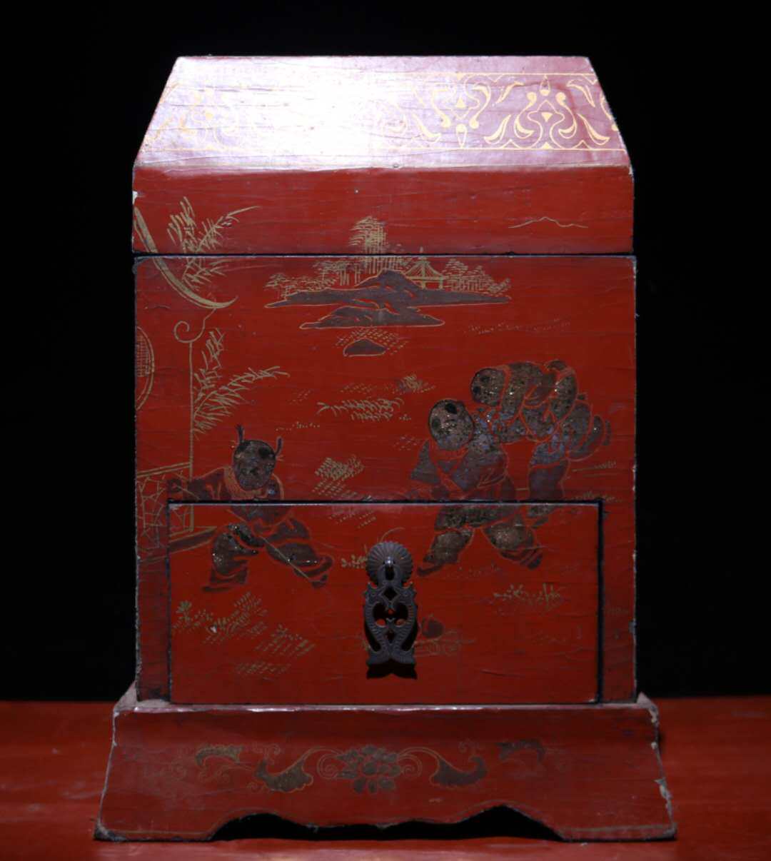 Folk Collection Old Wooden Tire Lacquerware Quinko Denko Official Box Containing Cabinet Hem