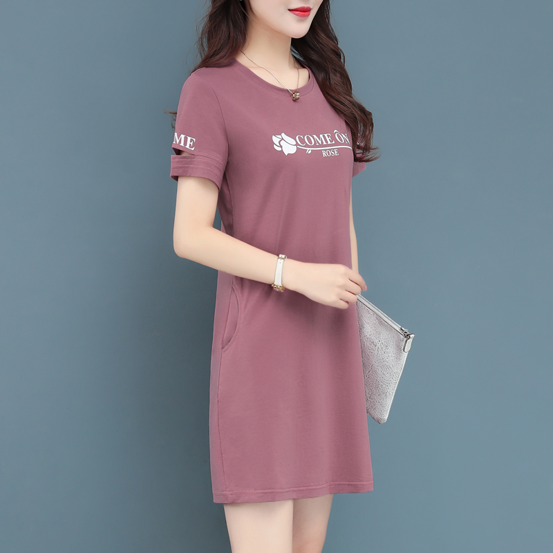 Short-sleeved T-shirt top 2022 new summer dress large size large version loose Korean version cotton mid-length T-shirt women's tide