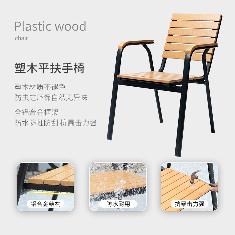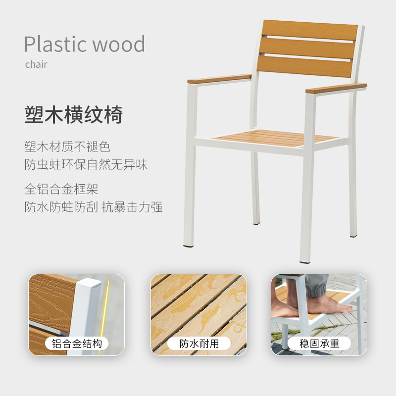 Refinement Cafe Milk Tea Shop Dining Chair Plastic Wood Outdoor Anti-corrosion Waterproof Chair Barbecue Stall Outside Single Chair